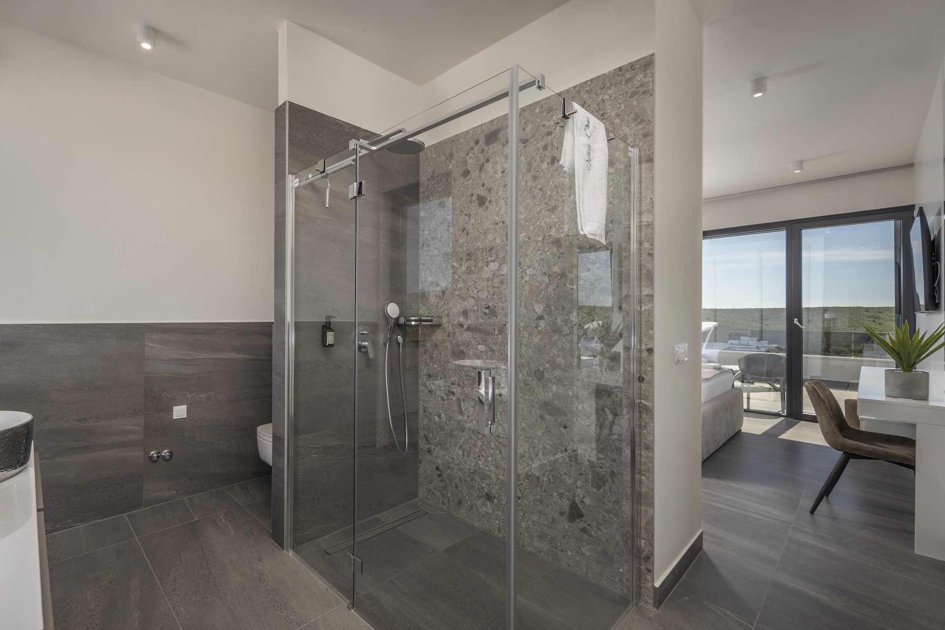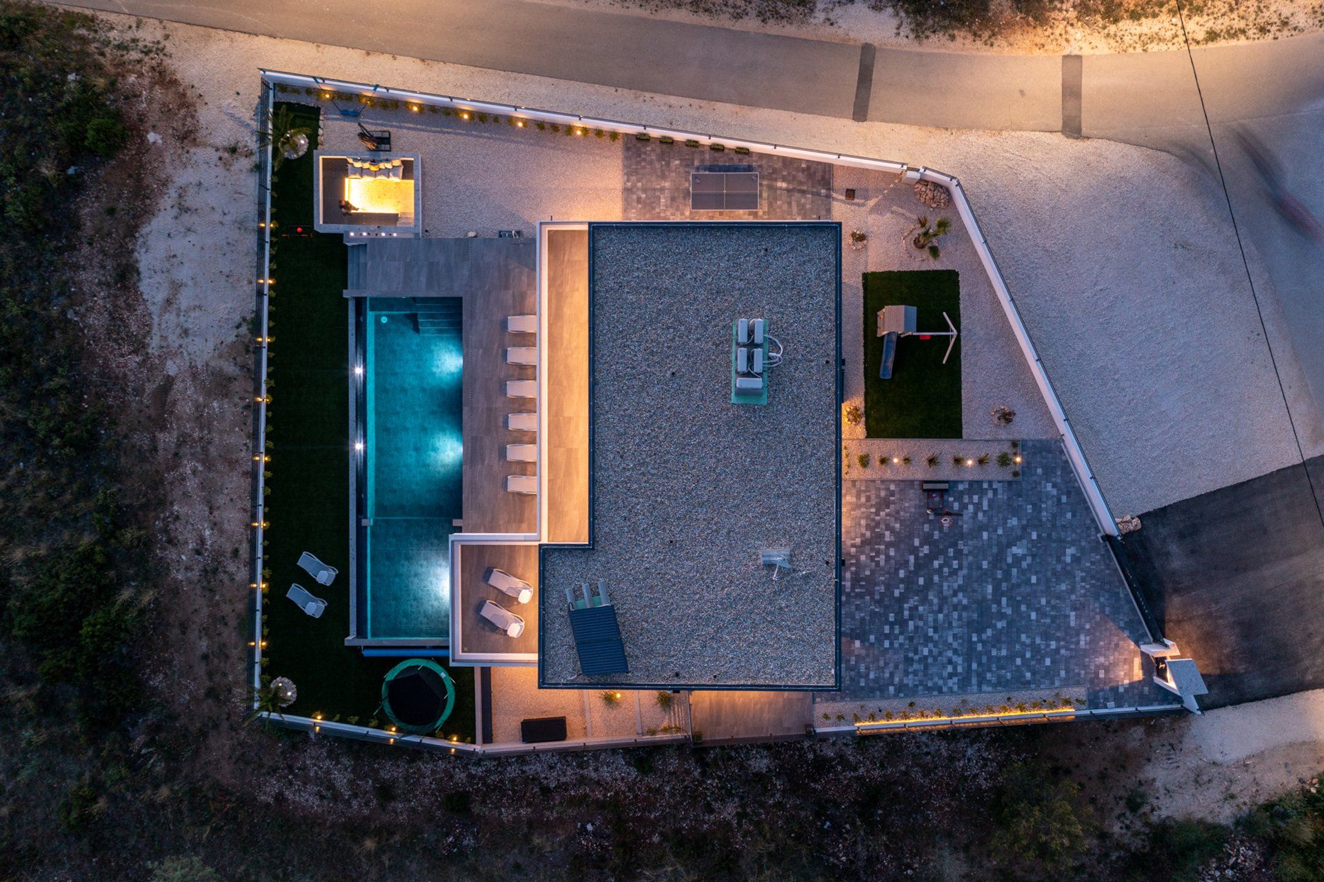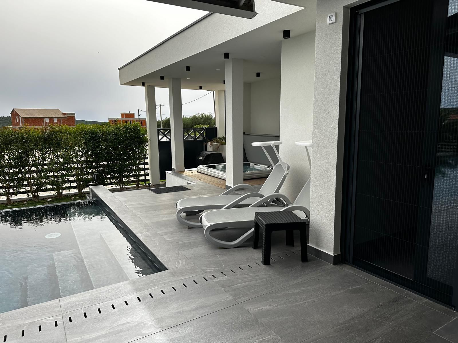 Luxurious and modern villa with pool is located in a small village in Debeljak, only 4 kilometers from the town of Sukosan and has 267 m2 of living space. The sea can be reached in only 3 kilometers. You can refresh yourself in the endless blue Adriatic Sea from the beautiful stone or pebble beaches. The fenced villa is fully air conditioned and with 4 bedrooms ideal for 8 to a maximum of 12 guests. All rooms also have electric shutters and WiFi.